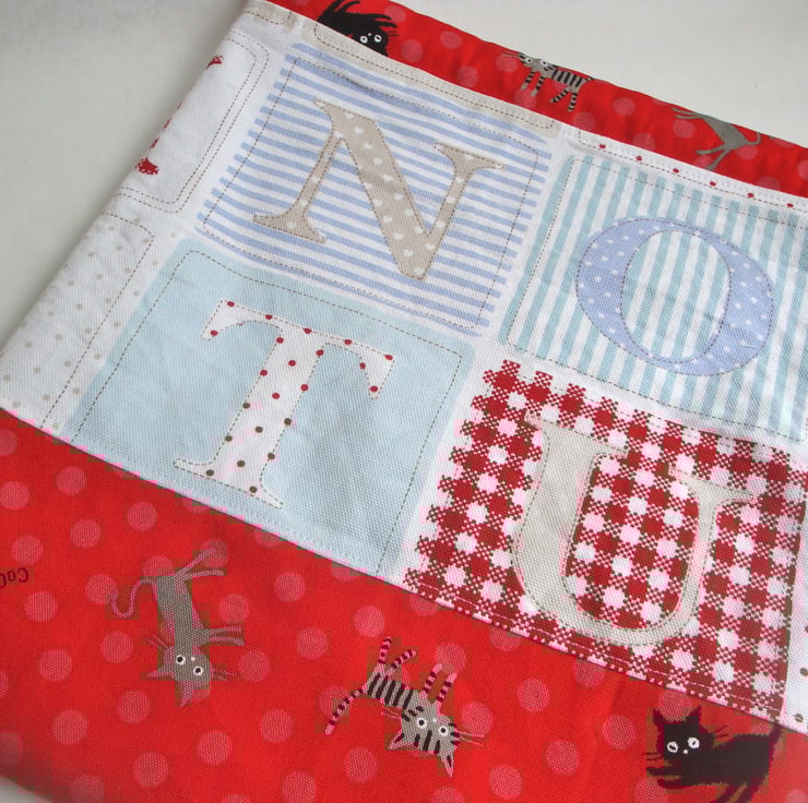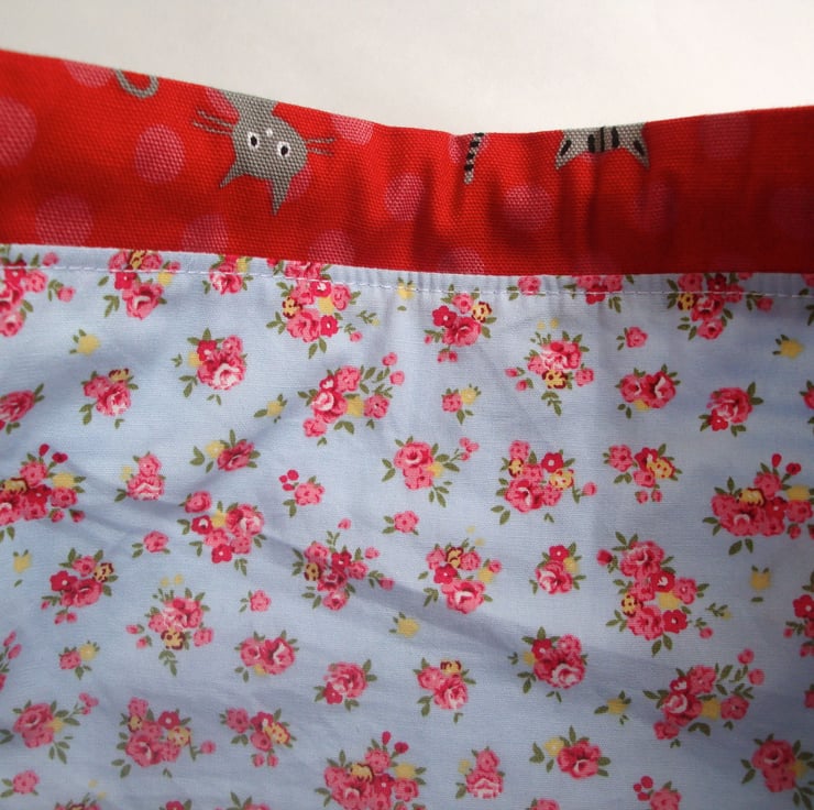 Handmade in a couple of lovely fabrics , with a cotton trim on the front .