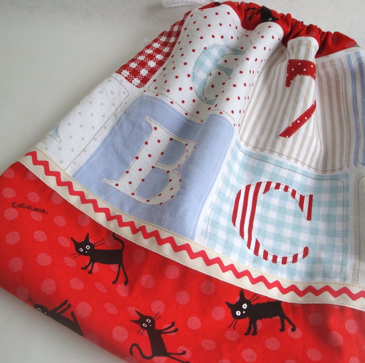 A lovely Kids drawstring bag , ideal for storing bits & bobs , toys , books , can also be use as a gift bag .
