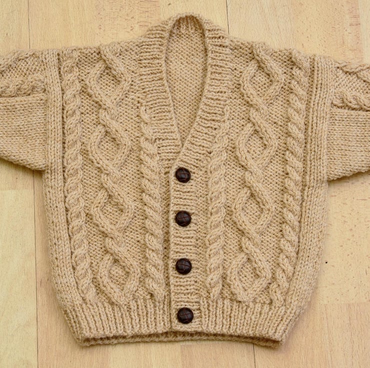 Hand knitted cardigan in an aran style to fit approx. 1 to 2 years