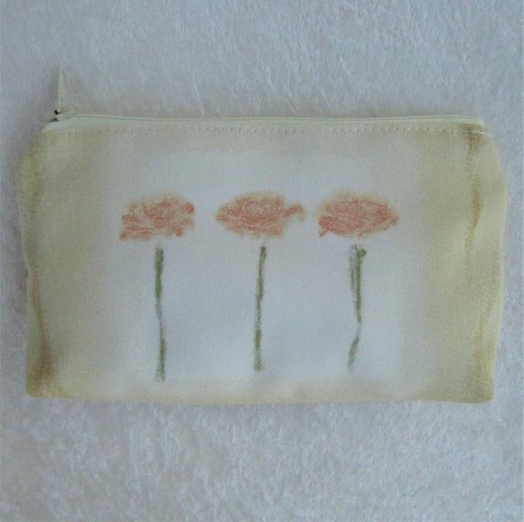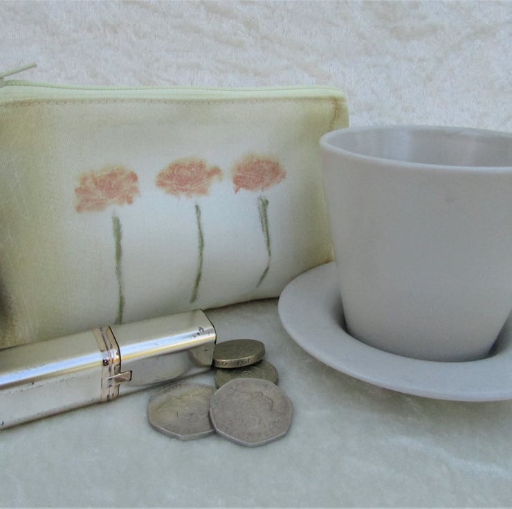 This large purse could be used as a coin purse and is large enough for bank cards and keys. It is also large enough to be used as a small make up bag or as a mobile phone pouch. With its summery floral pattern, it would make an ideal gift.