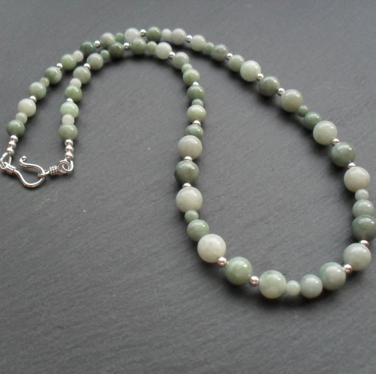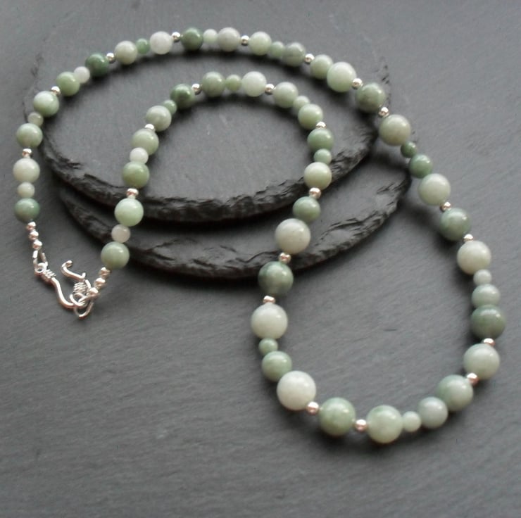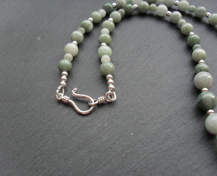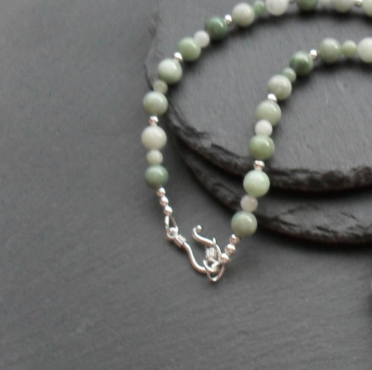 This lovely necklace is made using Genuine Burmese jadeite gemstones and a sterling silver hook clasp with sterling silver 3 mm spacer beads. necklace has been beaded onto a good quality beading wire