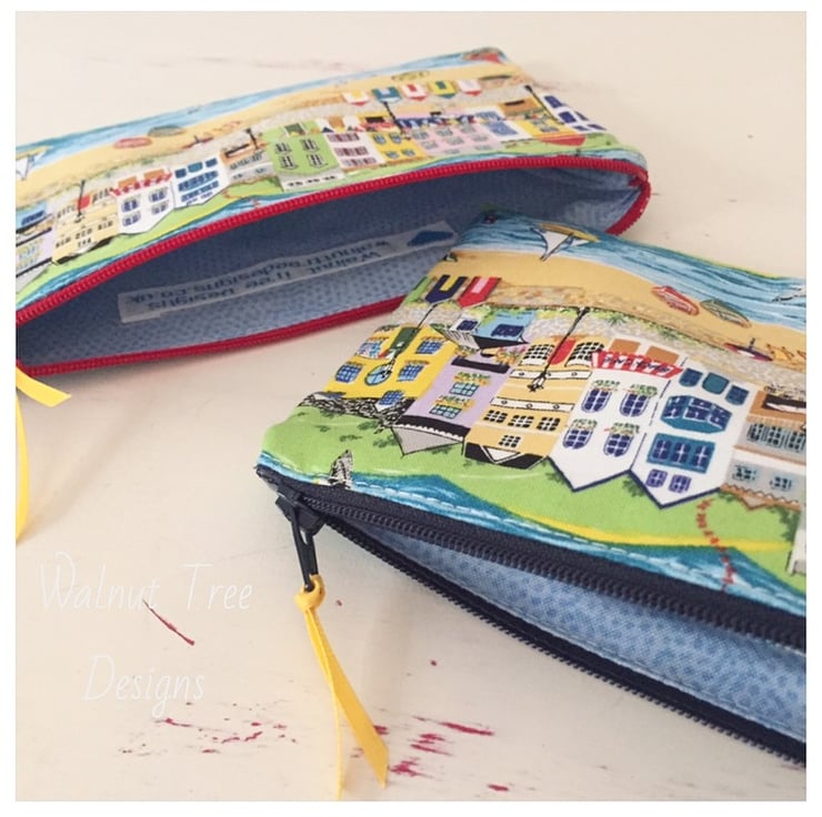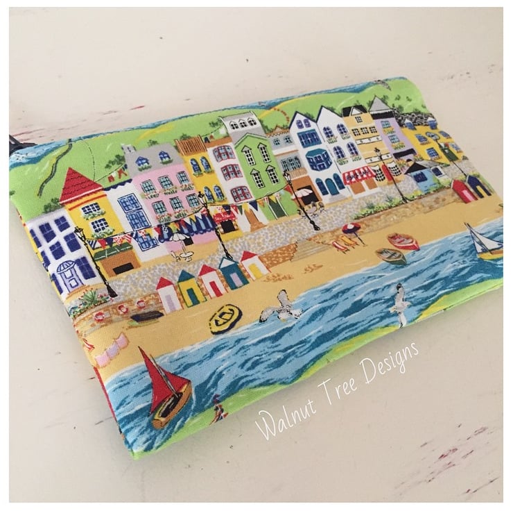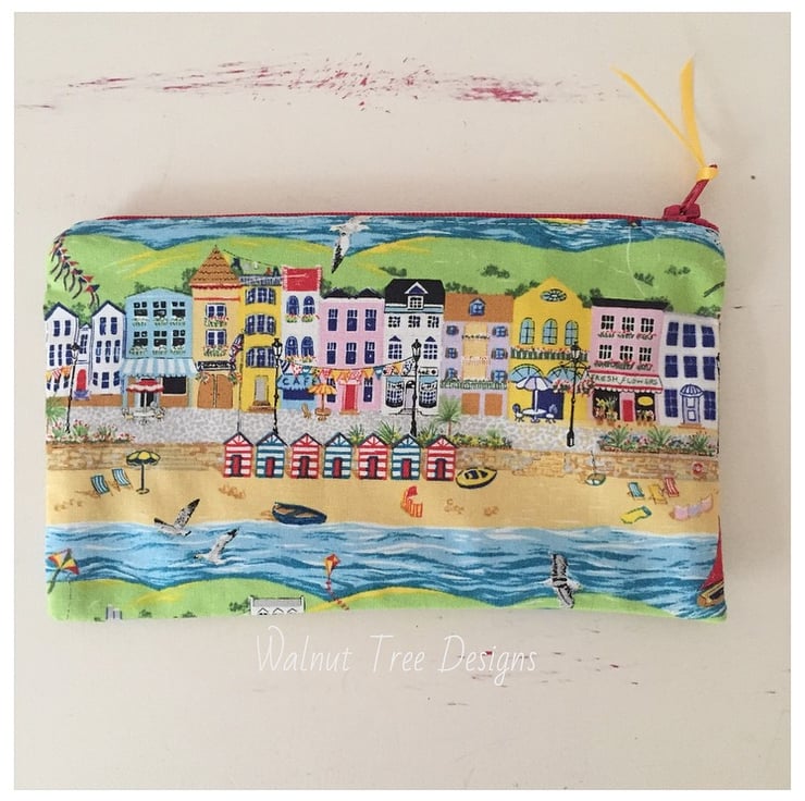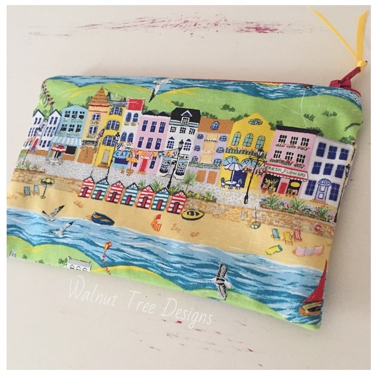 Medium-sized zip bag, featuring a seaside panorama stretching across the front and back panels.