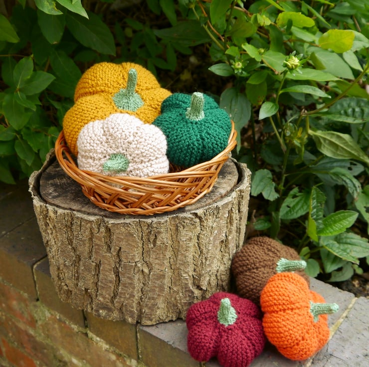 These cute little hand knitted pumpkins will make a beautiful autumn display. Ideal for halloween and thanksgiving too.