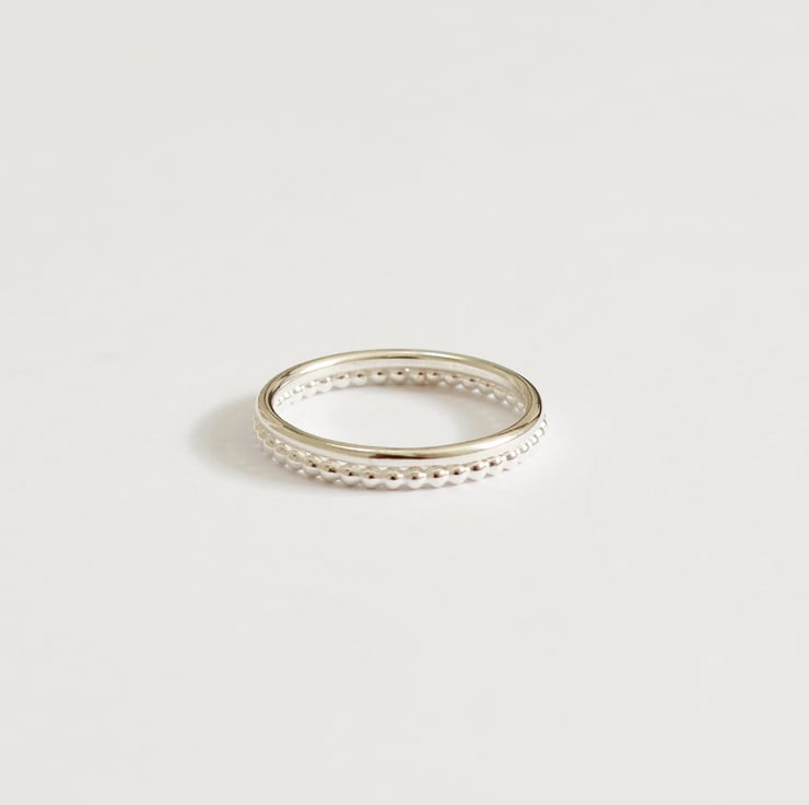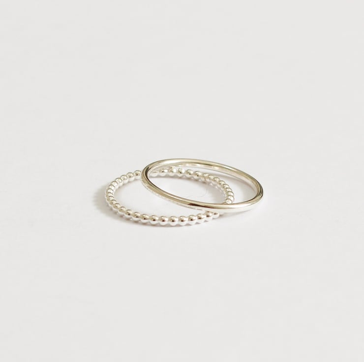 This set of 2 silver rings, one plain (1.2mm) one ball (1.2mm) make a very lovely contemporary and delicate combination.