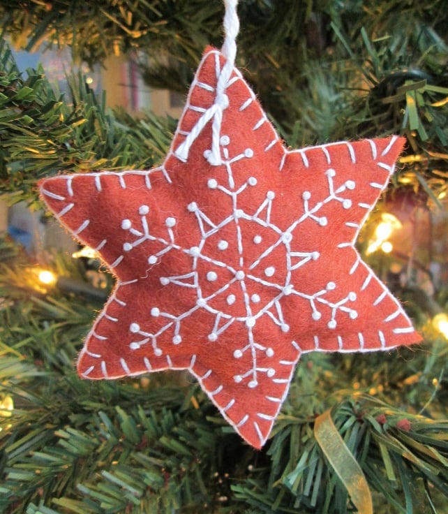 There's something magical about the combination of gingerbread and snowflakes - this felt 'gingerbread' has been hand embroidered with one of my snowflake designs - each one is a little bit different, just like the real thing.