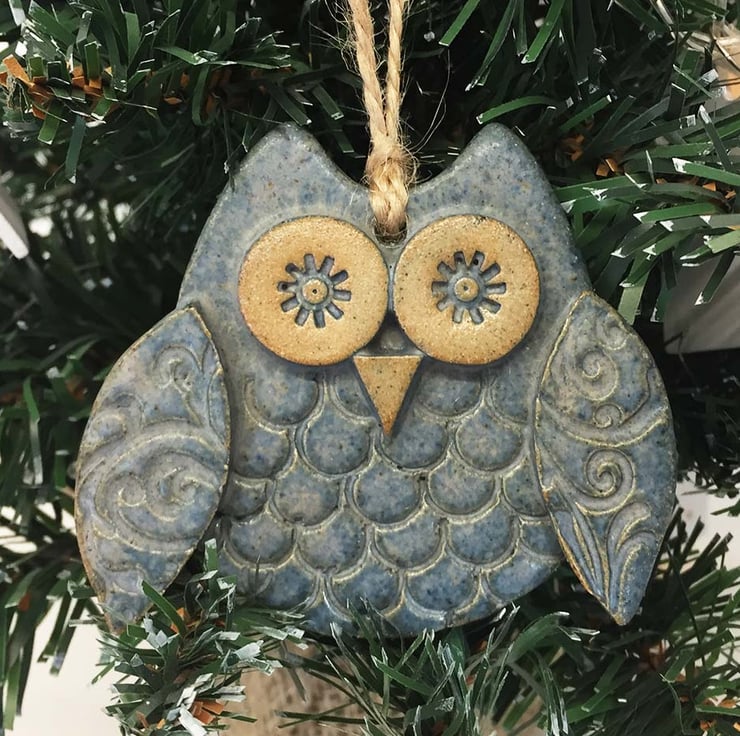 Ceramic owl hanging decoration Pottery owl ceramic bird Blue