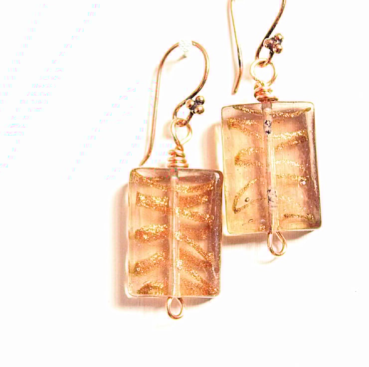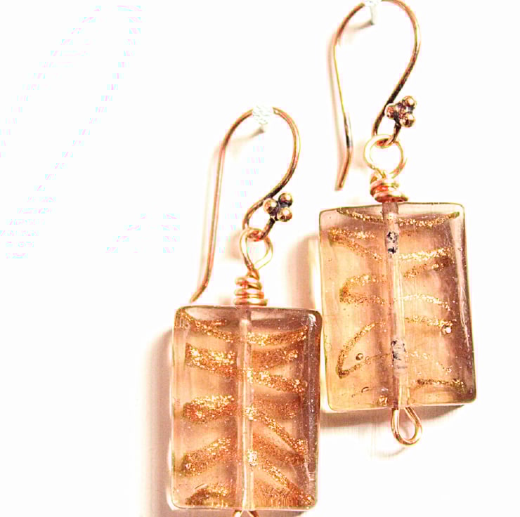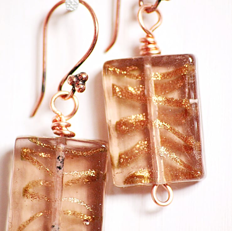 These beads are absolutely beautiful! I love the delicate swirl of copper through the middle, and tried to complement that by using some stunning copper ear wires.