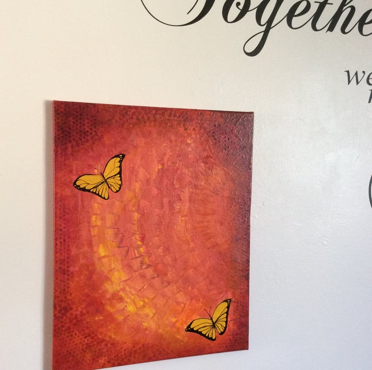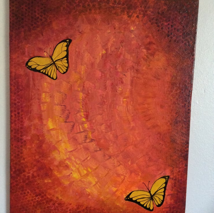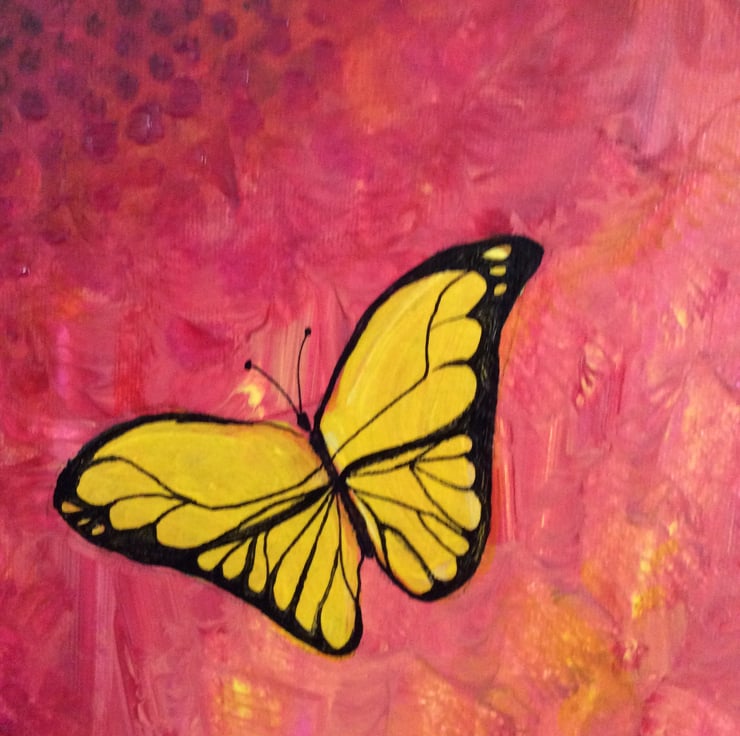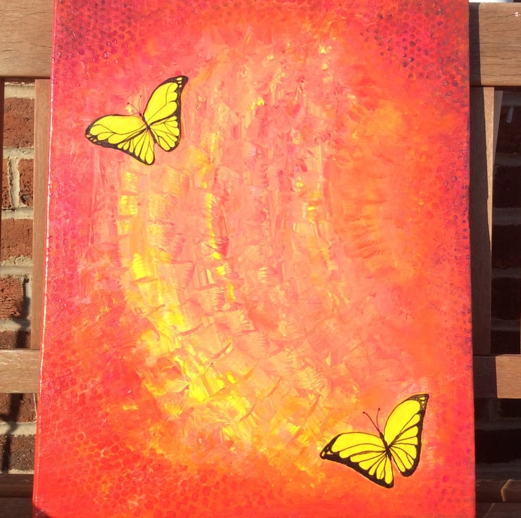 Yellow butterflies abstract, acrylic painting created in the U.K.