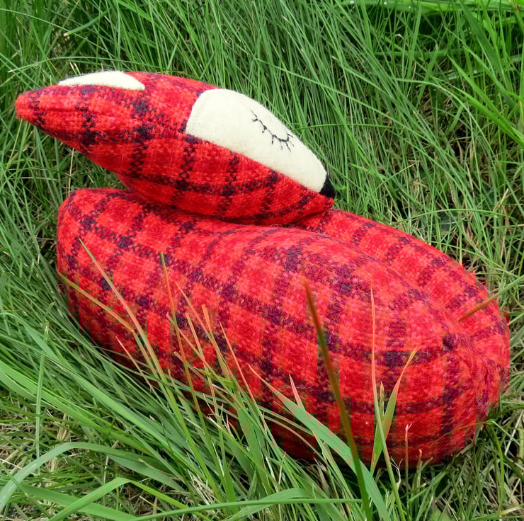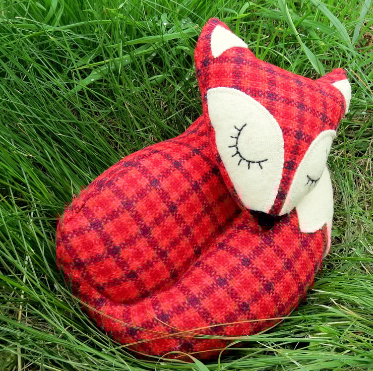 This little fox is made from a tactile red tartan wool.