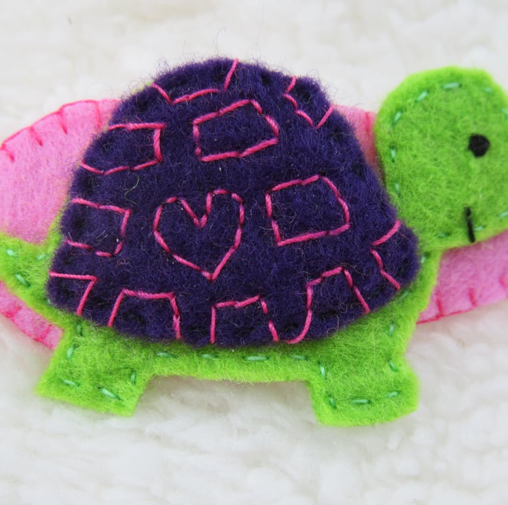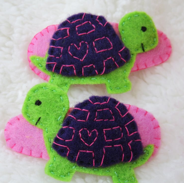 I love any animal, and love to make them as cute as possible! These are extra cute with a little heart hand stitched into the shell.