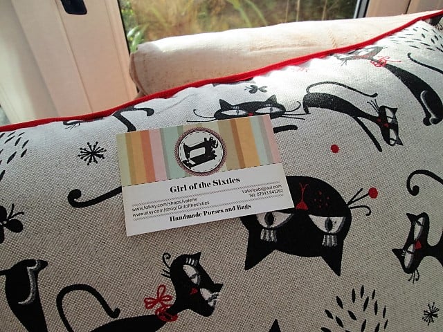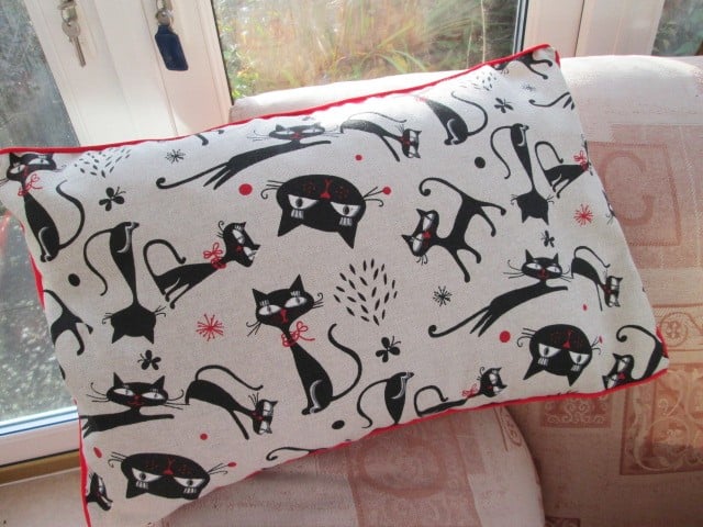 Cats cushion with lovely soft polyester inner, zip and red piping.