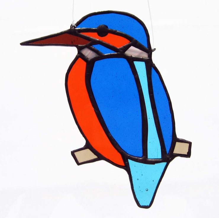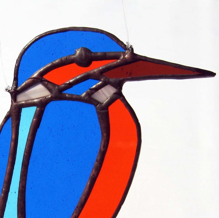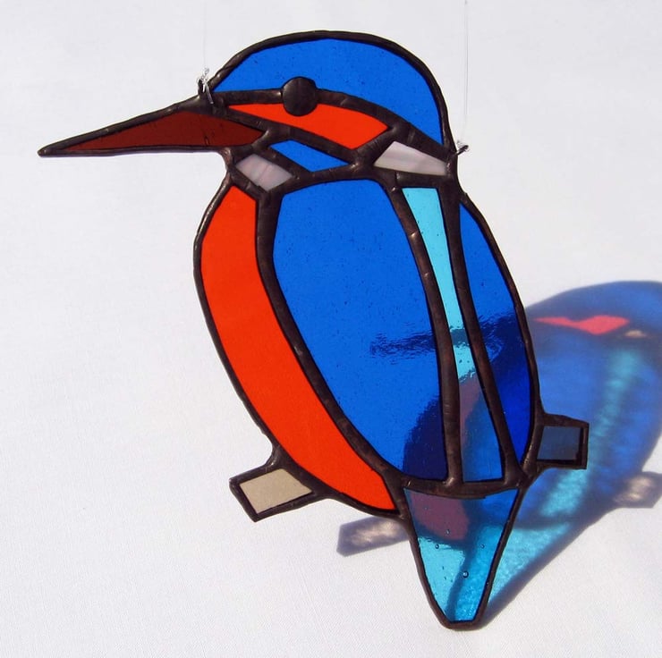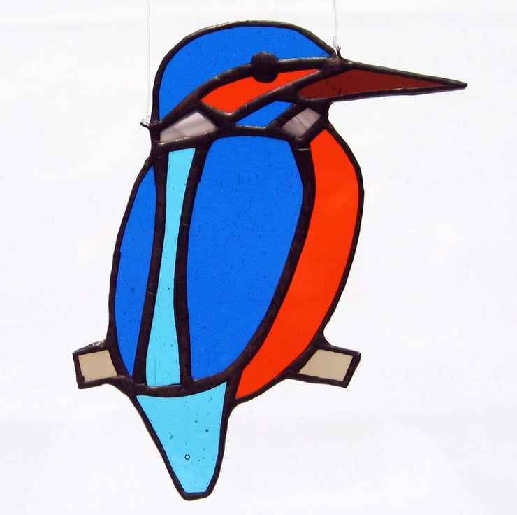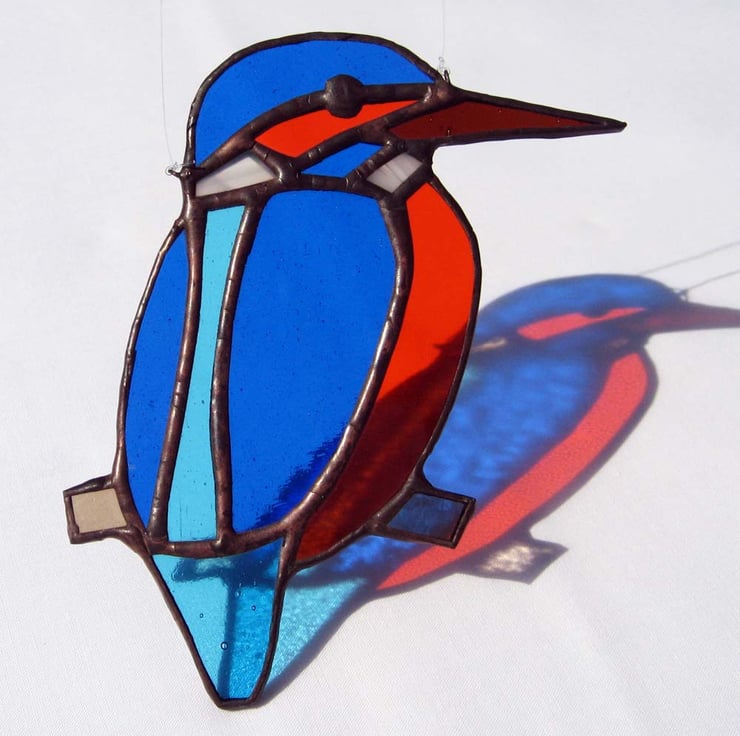 Held by a length of strong, clear nylon line, the Kingfisher is ready to hang in a window or in front of any light surface.
