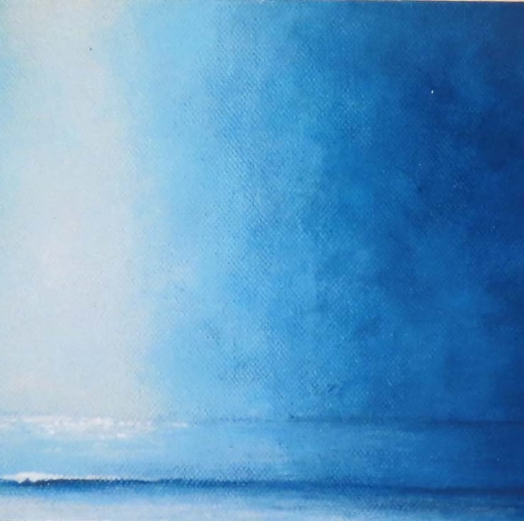 A blank greeting card reproduced from my original acrylic painting of a serene sea observed from the beach. Each card measures 6x4 inch (10x15.5cm).
