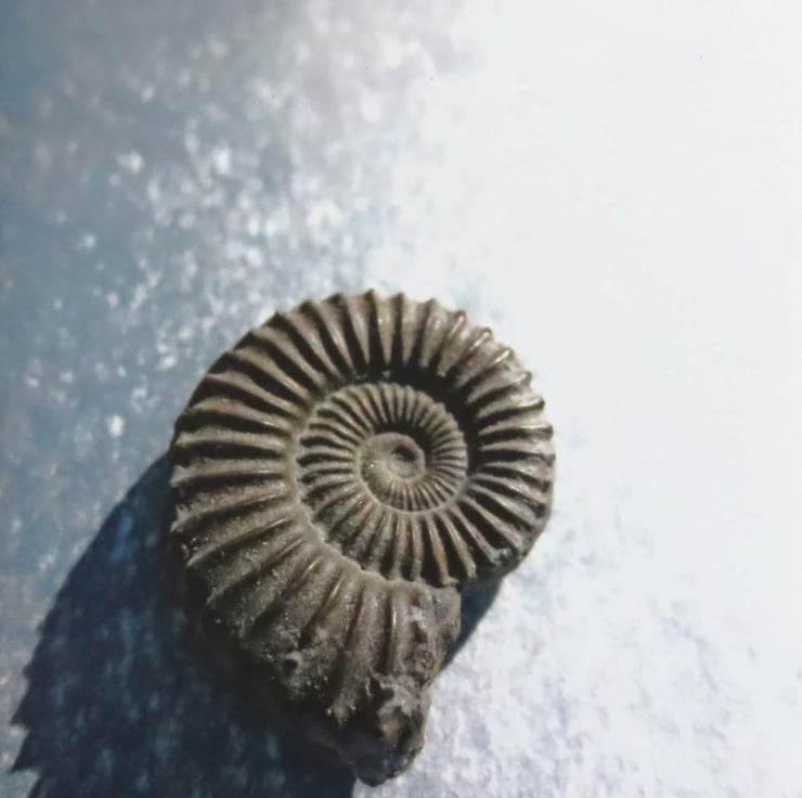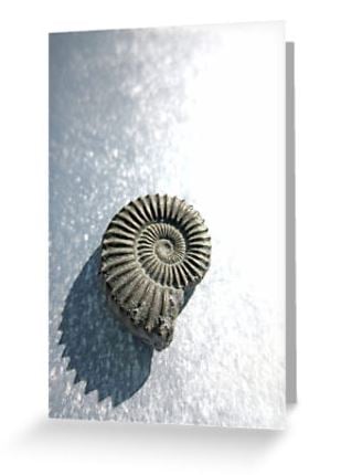 A blank greeting card reproduced from my digital photograph of a spiral fossil ammonite.