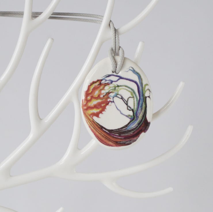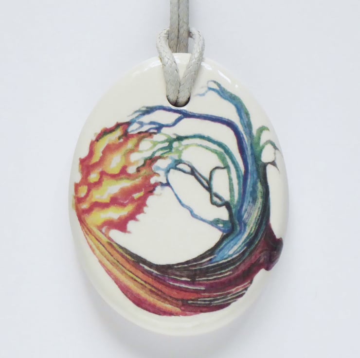 Fire and Water Elements Design Ceramic Pendant on 38 - 43cm or 15 - 17 inch Light Grey Cord with Lobster Clasp