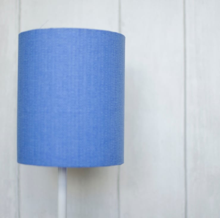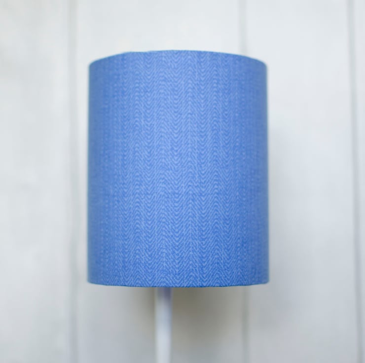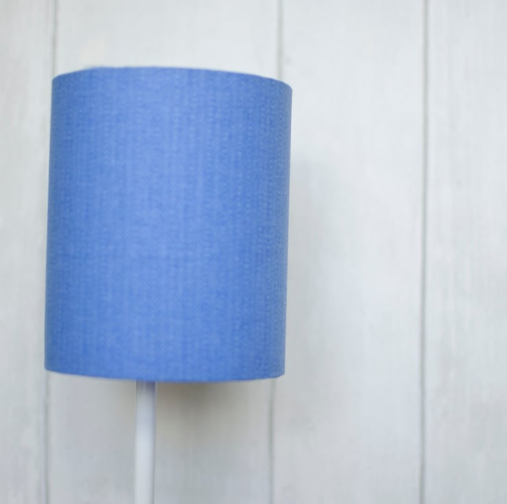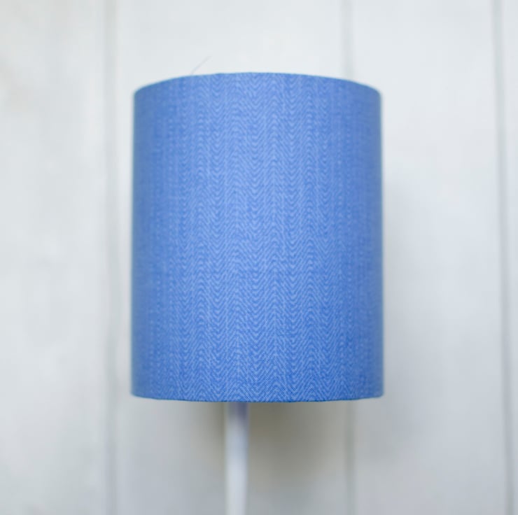 This lampshade has a blue fabric with a simple herringbone pattern and has a beautiful simple look.