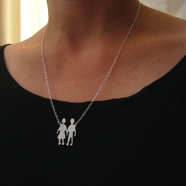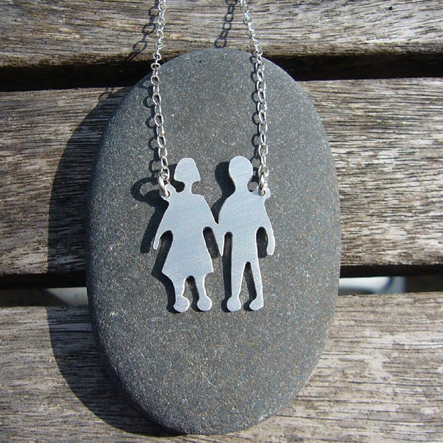 This design started life with Mandie wanting a piece of jewellery to represent her children without using their names. She took photos of her son and daughter and created a range of figurative jewellery with their outlines.