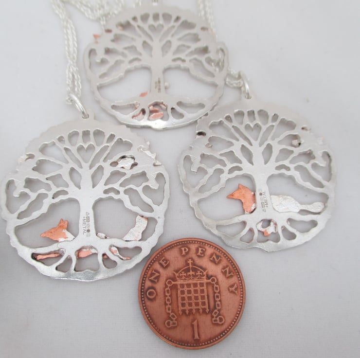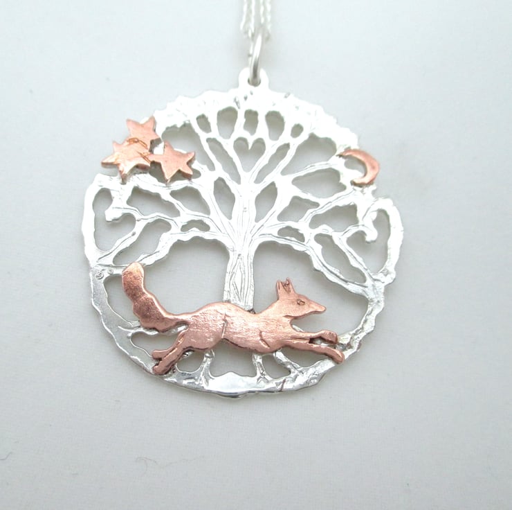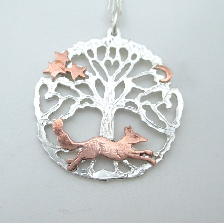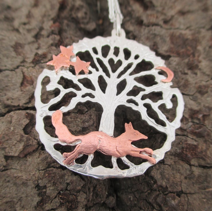 Based on a Yorkshire tree on the Wolds Way. This is a solid substantial pendant hand made from silver & copper.