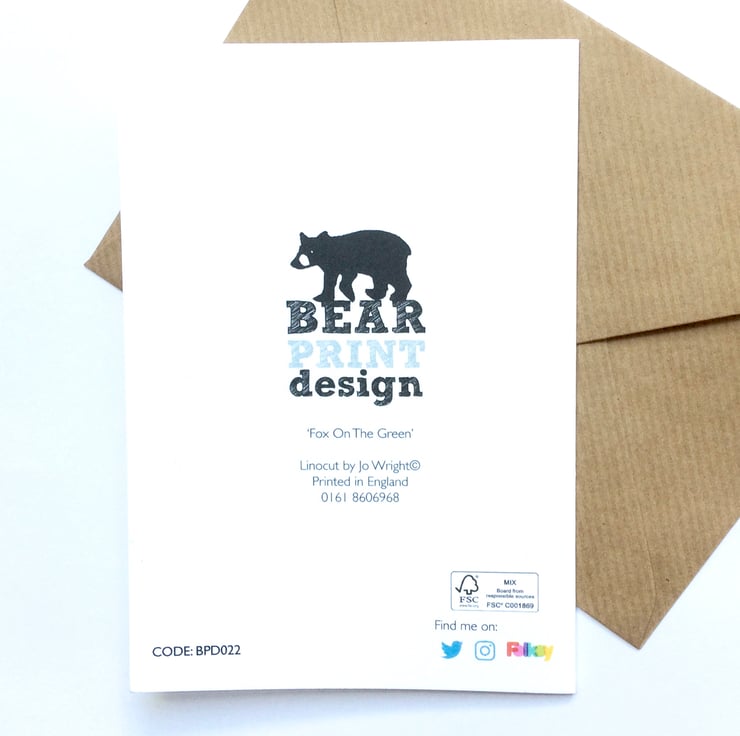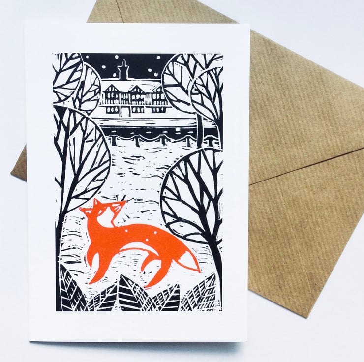My popular fox print is now available to buy as a card, left blank for your own personal message. It measures 10.5cm x 15cm, is printed on FSC certified card and comes with a recycled brown envelope. Sent in first class post within three working days.