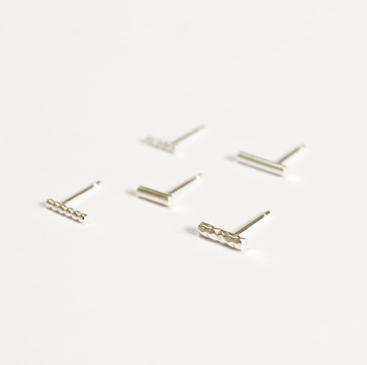I neaten the cut bars of silver before soldering sterling silver ear posts to the back of each and then they are polished to a high shine finish.