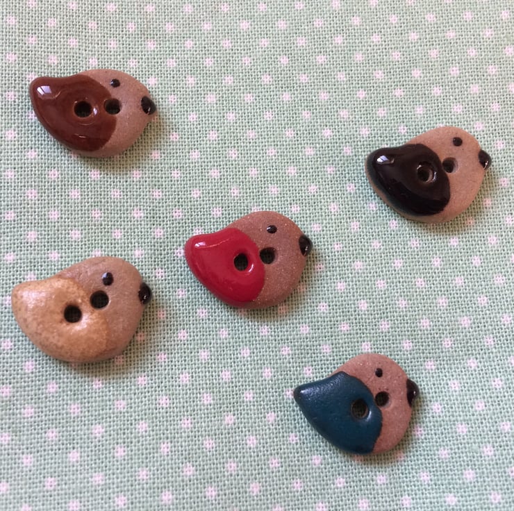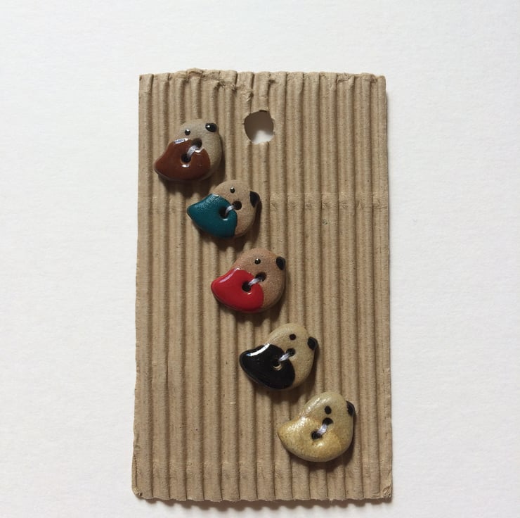 This gorgeous set of 5 tiny ceramic multicoloured bird buttons are handmade by Incomparable buttons in South Africa. The company provide a fair wage and good working conditions to help South African women support their families.