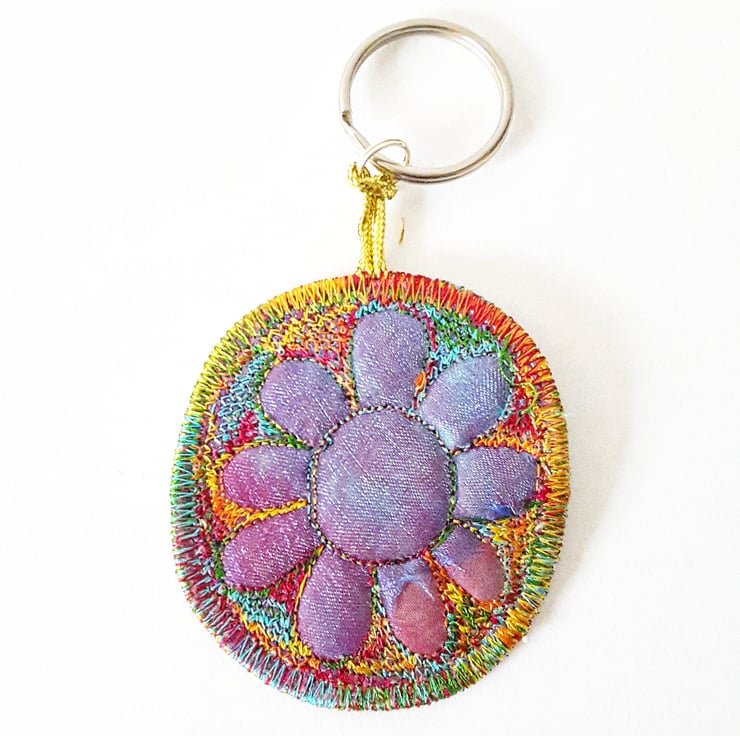 This is a handmade machine stitched fabric keyring