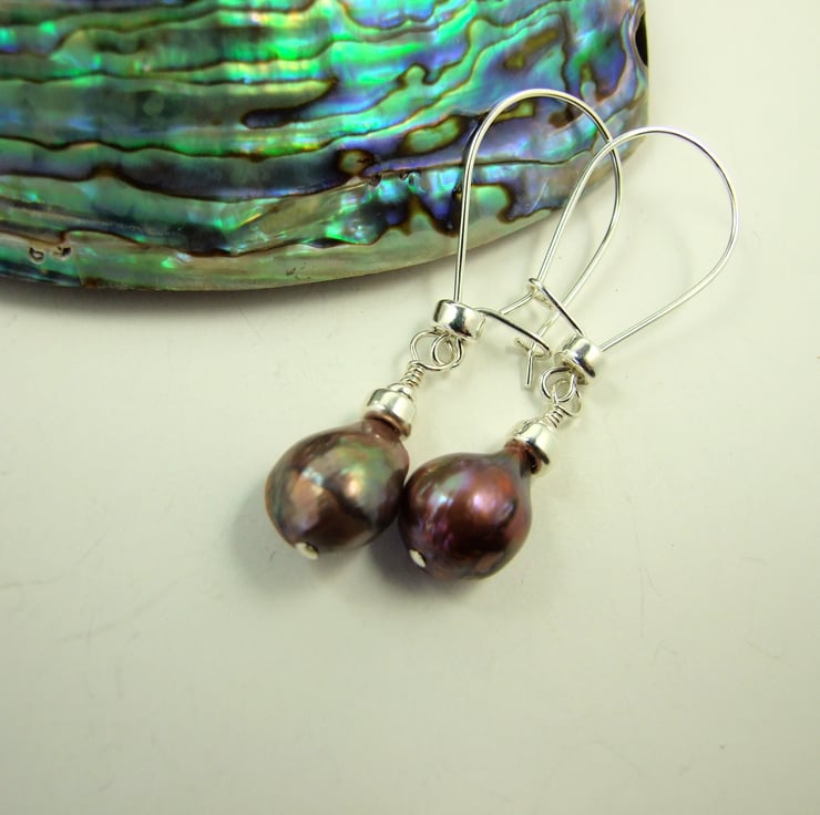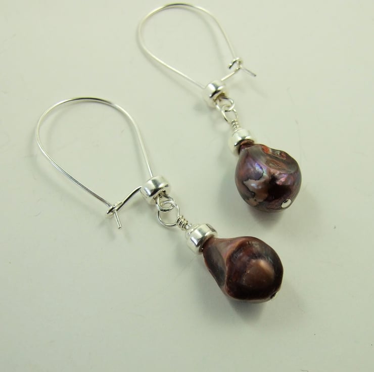 Pearl Dropper Earrings. Sterling Silver with warm coffee colour freshwater pearls