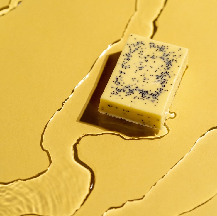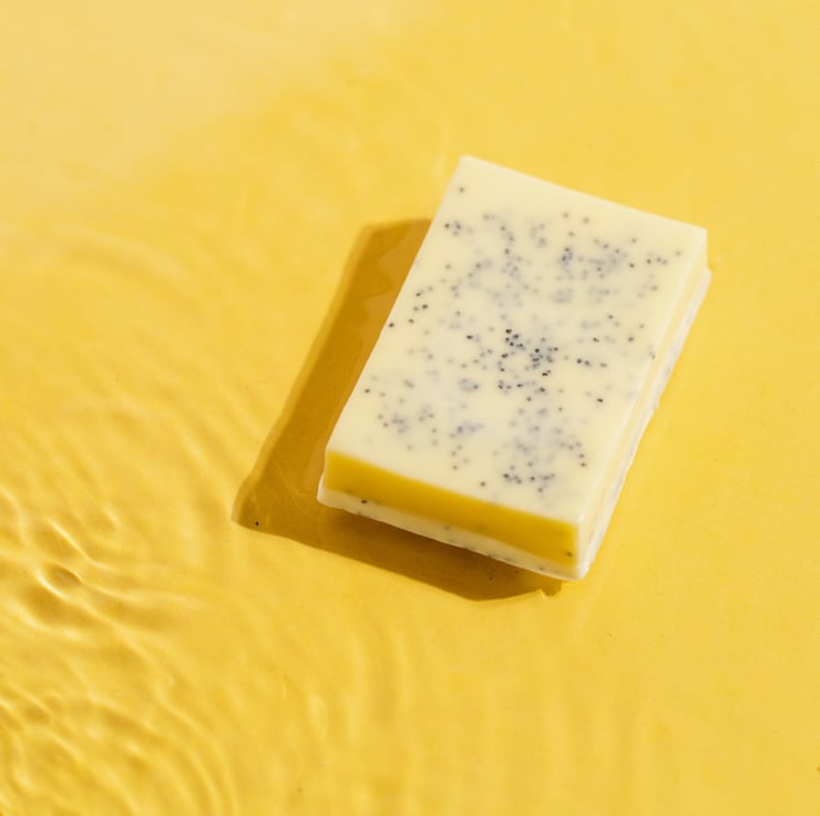 Luscious handmade lemon and poppy seed soap vegetable derived bar lightly scented with lemons. The seeds act as a natural, gentle exfoliant and will biodegrade unlike the plastic equivalent found in other scrubs. The soap has a high glycerine content making it a lovely moisturiser. These bars do not contain Sodium Lauryl Sulphate.