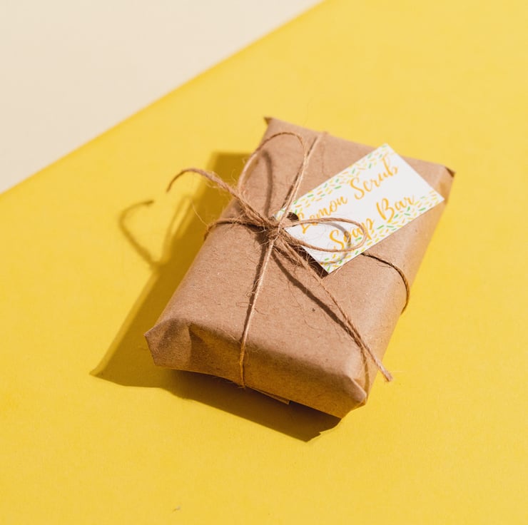 Each bar will arrive packaged in a biodegradable bag and then individually hand wrapped in brown paper and string - a little soapy parcel!