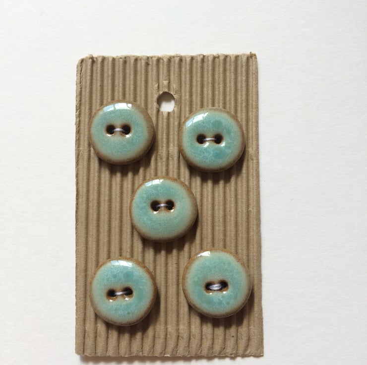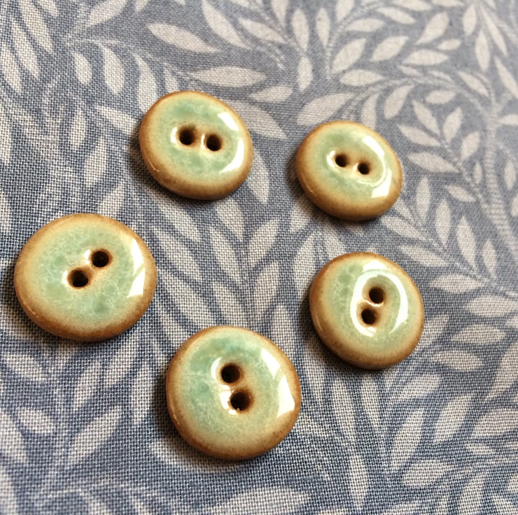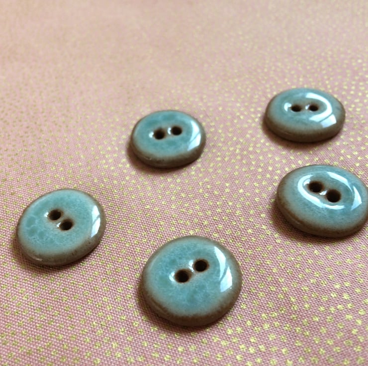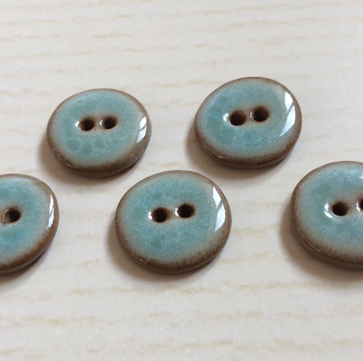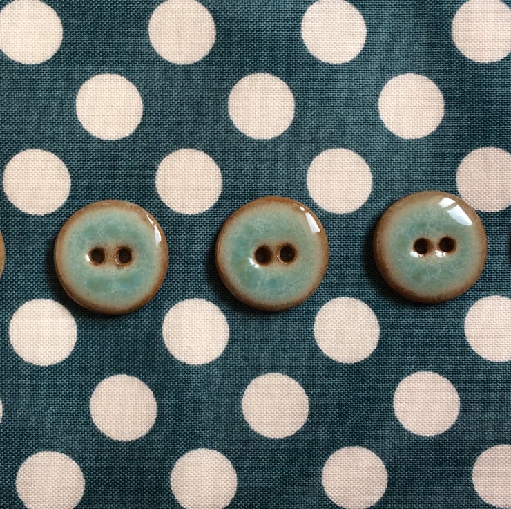 This lovely set of 5 round ceramic turquoise and brown buttons with a gloss effect are handmade by Incomparable buttons in South Africa. The company provide a fair wage and good working conditions to help South African women support their families, as well as using environmentally friendly processing techniques and materials.