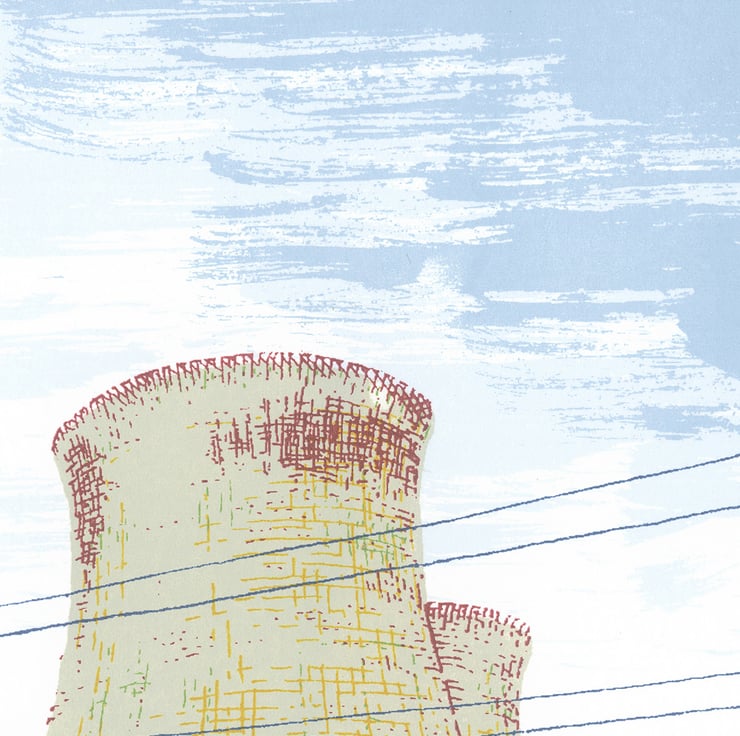 This high quality giclee reproduction print is of Ferrybridge powerstation. Based where the M62 and the A1 cross, it's a very imposing landmark which has been recently decommissioned.