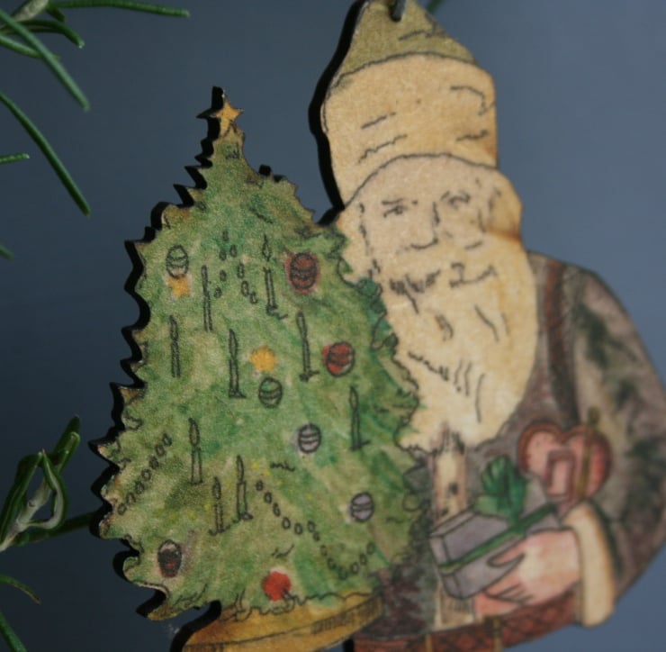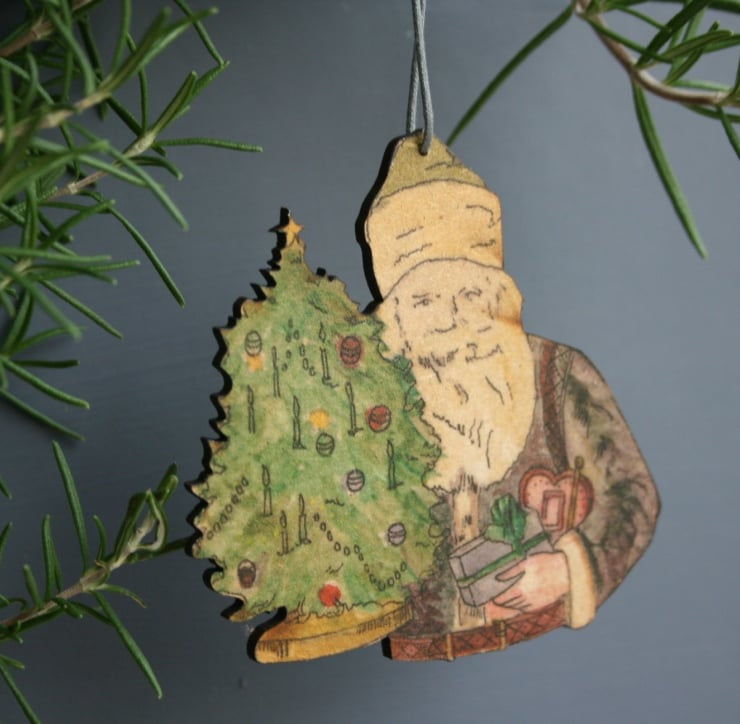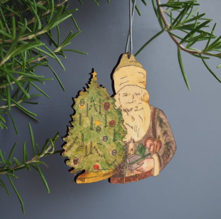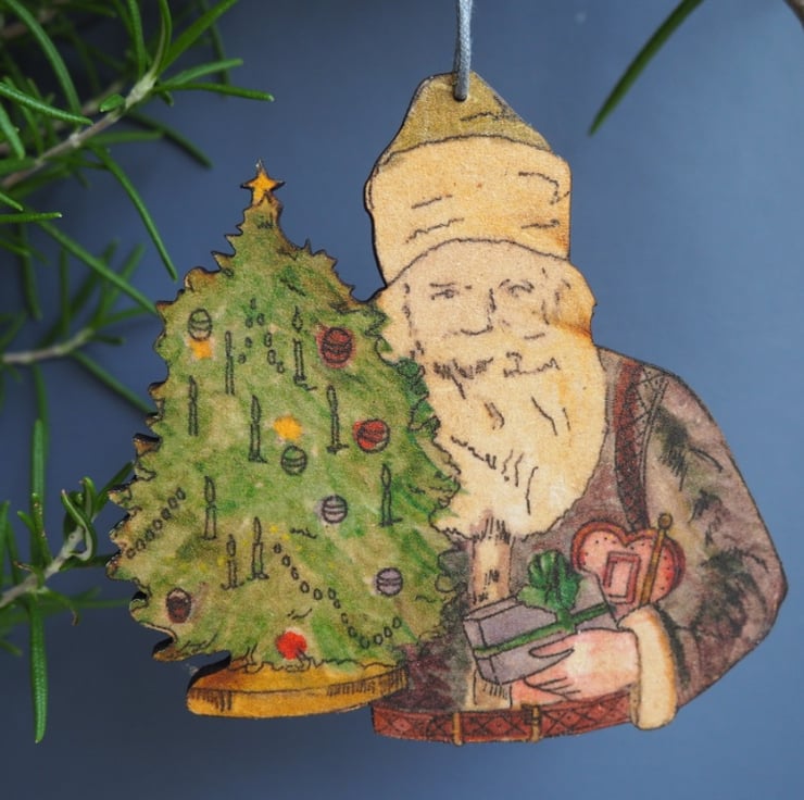 This handcrafted wooden Father Christmas hanging is inspired by Vintage Christmas card designs and has been especially designed, by me, for Christmas 2017.
