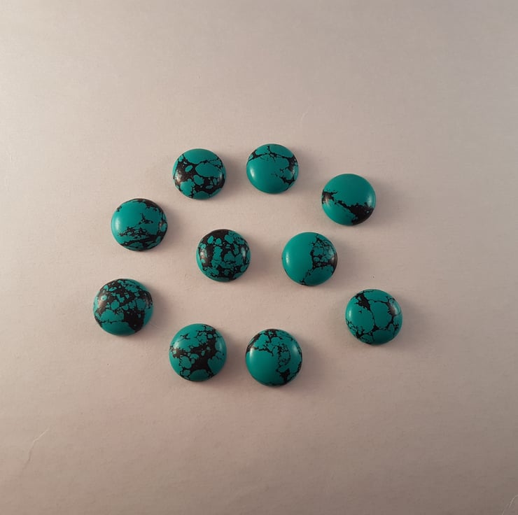 These Turquoise cabochons are a lovely greeny blue shade, with pretty black lines. Turquoise is a very popular stone especially in silver jewellery making.