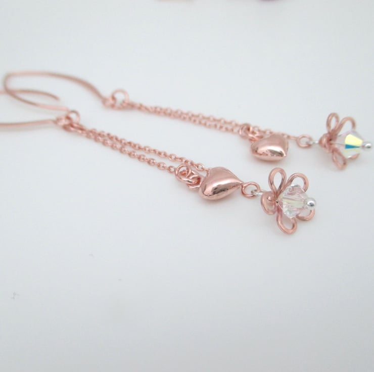 Drop Crystal earrings, made from rose gold plated silver. Light & etherial, these are a special piece suitable to be worn for a celebration. Even a wedding day. Very light & comfortable to wear.