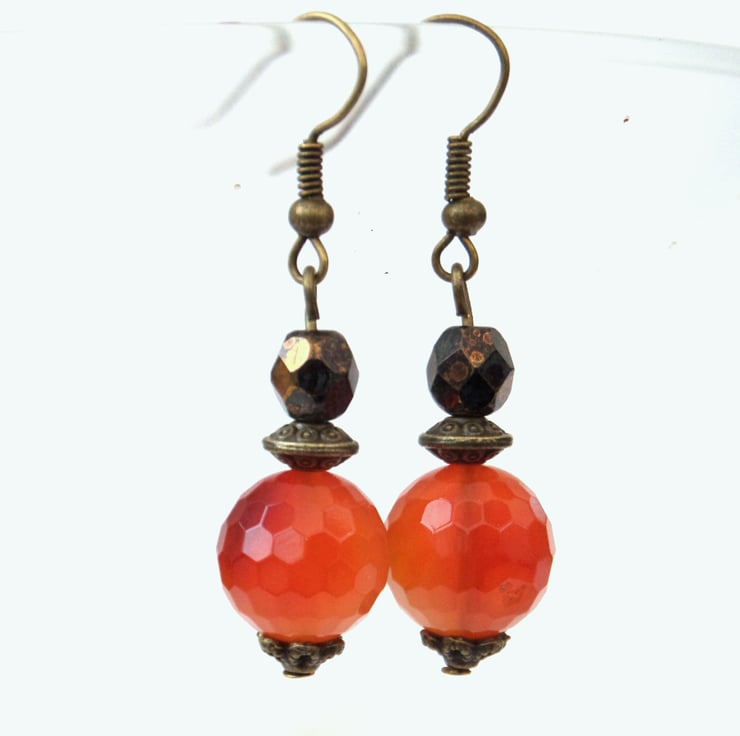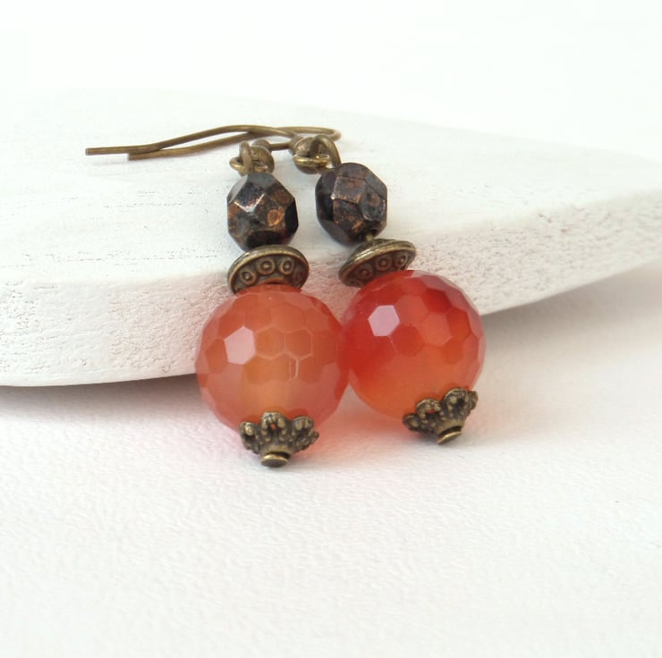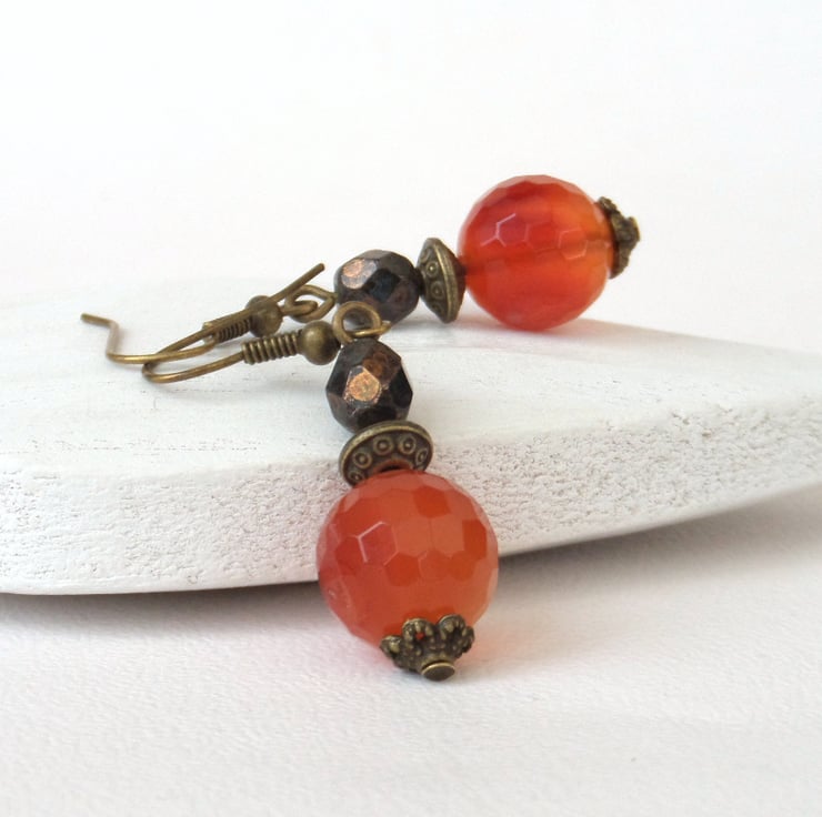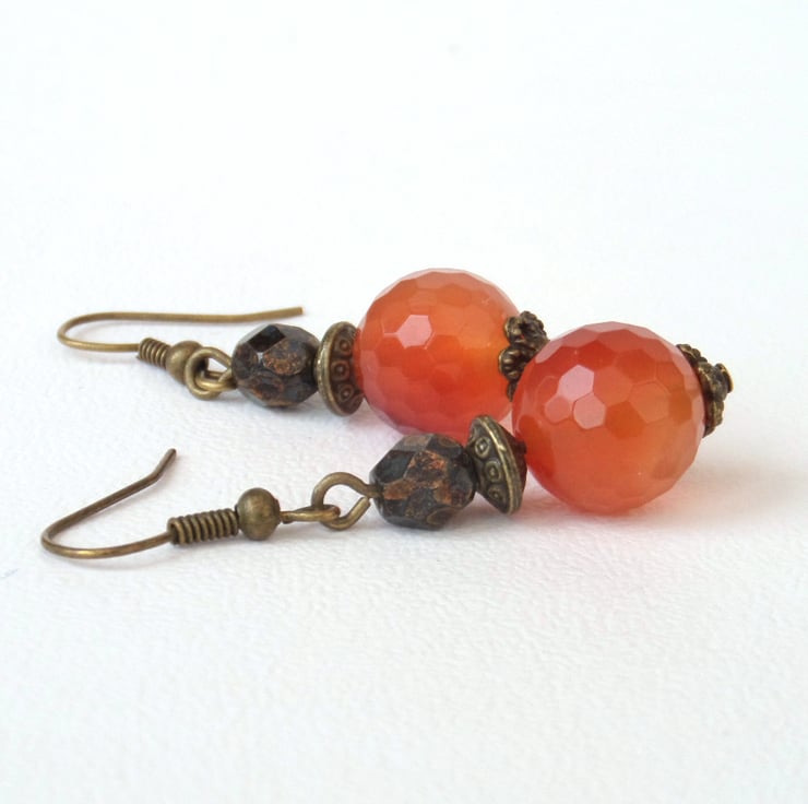 The carnelians are 12 mm rounds. They are faceted, which adds to their texture.