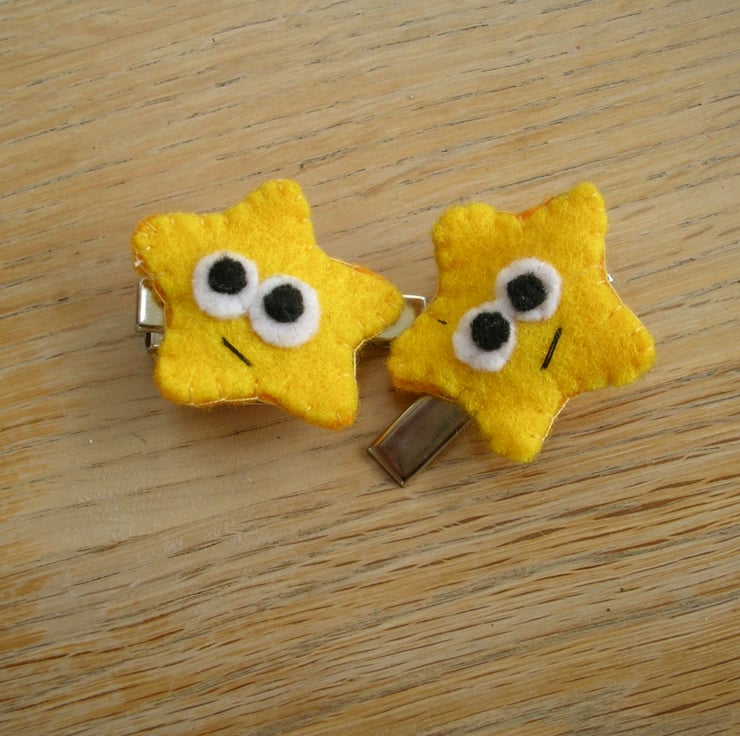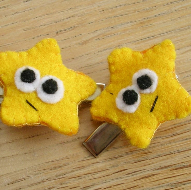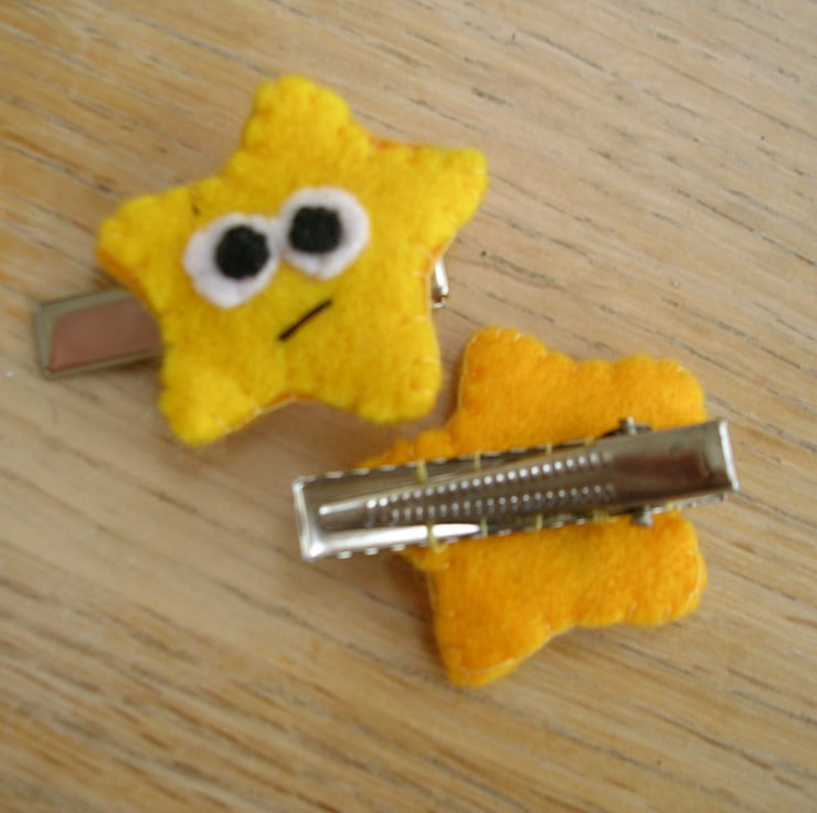 These super-cute star hair clips measure 3cm by 2.5cm and are mounted onto 4cm alligator clips. Sturdy and durable, they won't slip even on thin hair