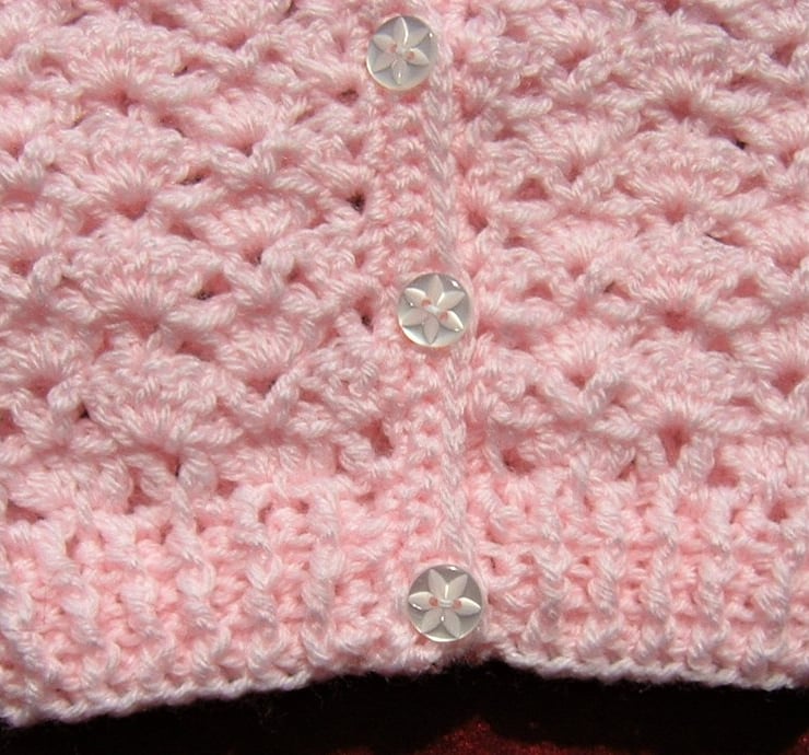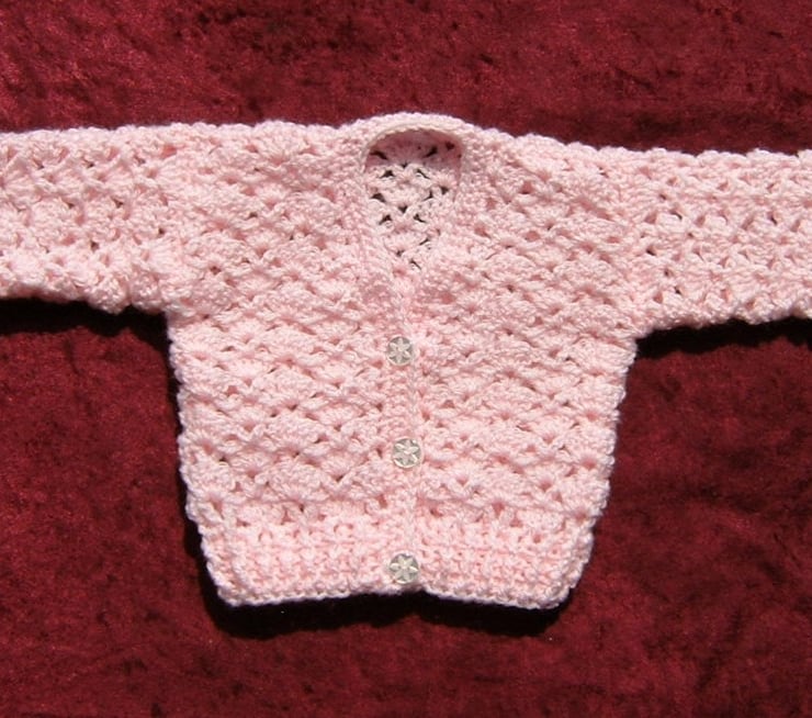 Crocheted using a quality acrylic yarn it features a pretty shell pattern.