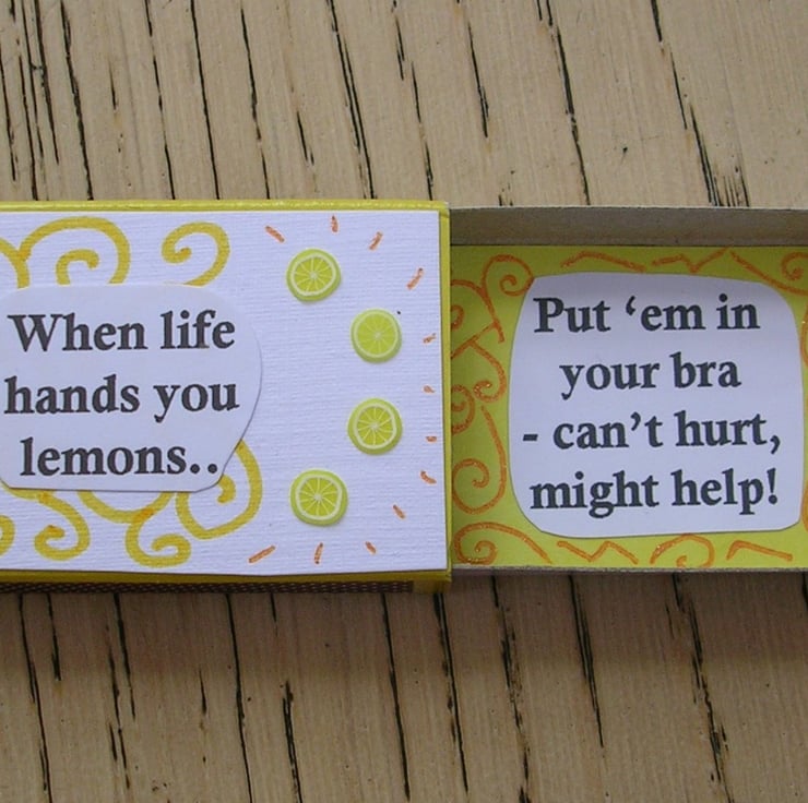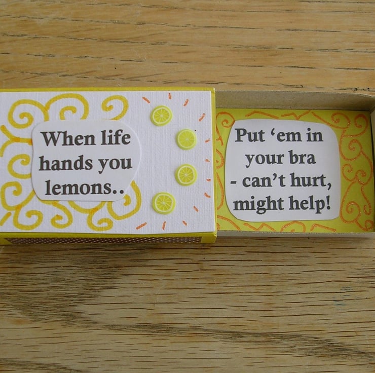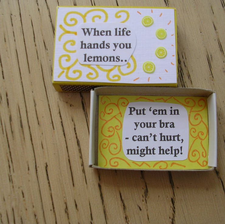 Everyone needs something to get them through the day. Whether it's a bit of inspiration, advice, or just a giggle. I thought these matchboxes make a lovely, inexpensive gift to spread a bit of cheer...