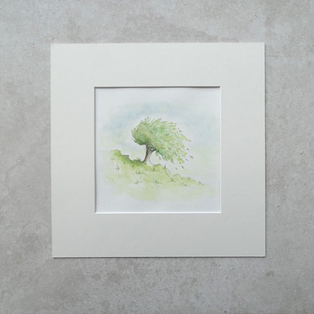 My original watercolour painting ‘Tree Hill’ comes with a quality soft white square mount and backing board ready for framing.