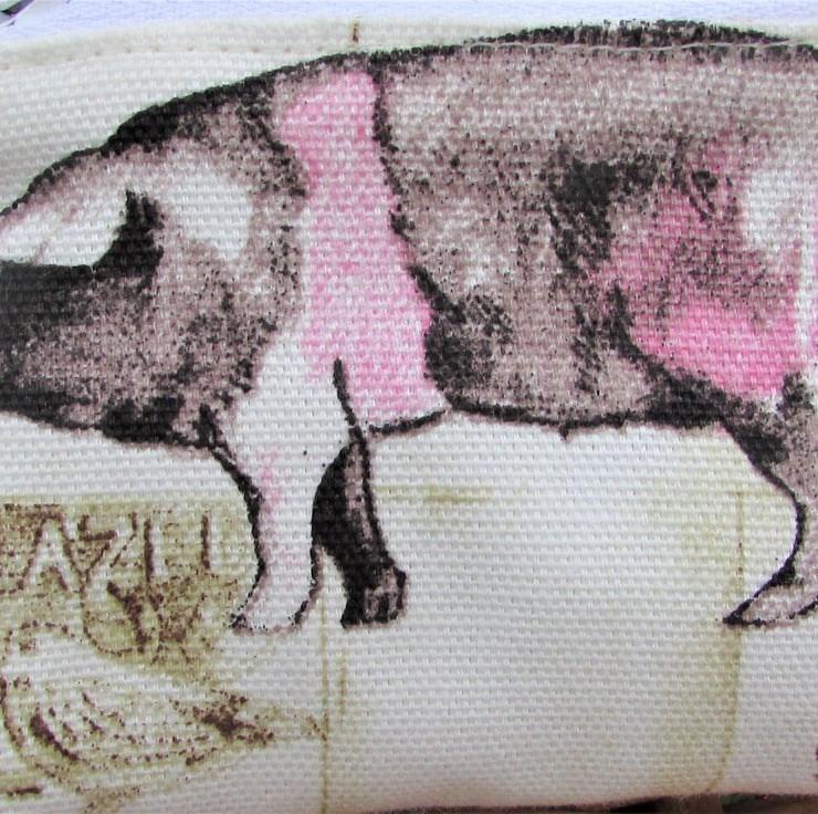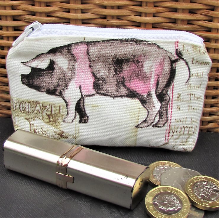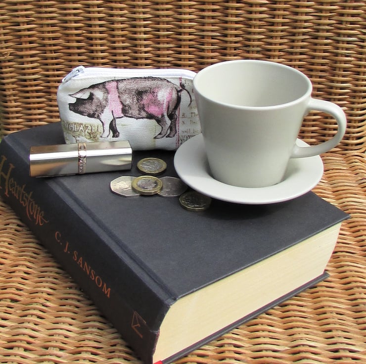 This handy little coin purse will fit into the smallest of handbags but is just large enough to hold cash and a bank card and would also hold a lipstick. It would make a lovely gift for anyone who loves pigs or rural life.