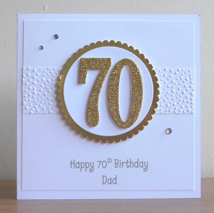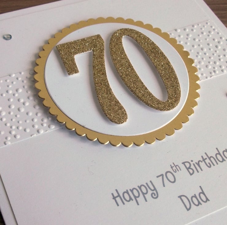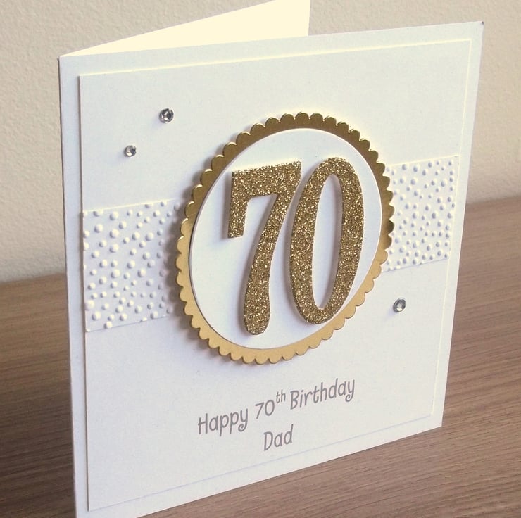 Handmade 70th birthday card - this card can be made with any number making it appropriate for any age birthday. Could be : 18th, 21st, 30th, 40th, 50th, 60th, 70th, 80th, 90th, 100th or any number in between.