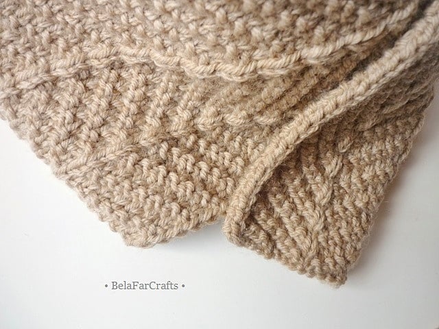 I hand knitted this garment in a detailed pattern that took several hours to complete. I used 100% wool, of limited edition, which is soft against the skin, breathable and drapes well. The scarf is perfect for light-coloured outfits, a formal suit or your favourite jeans.