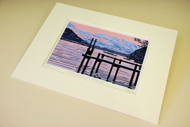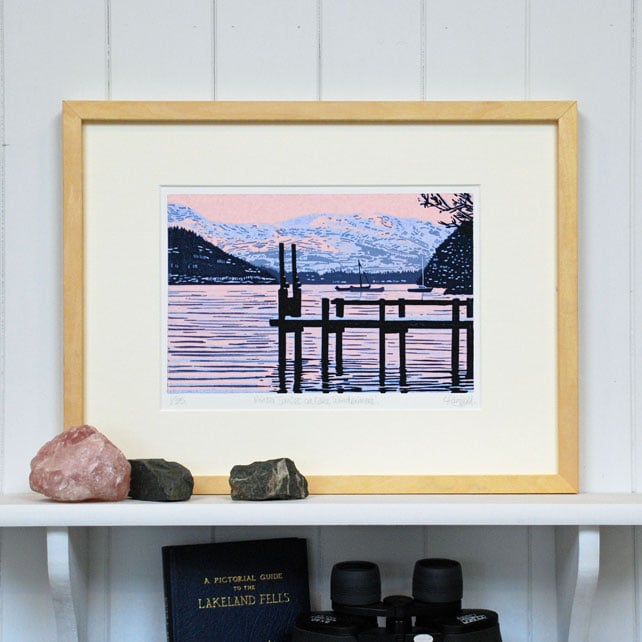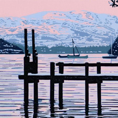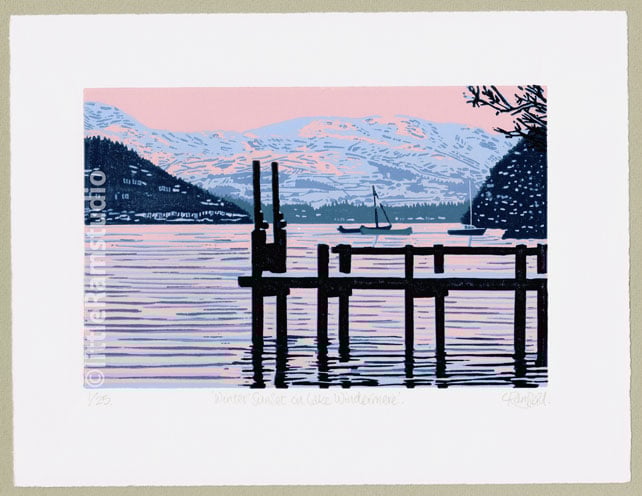 Winter Sunset on Lake Windermere - Limited Edition Linocut Reduction Print