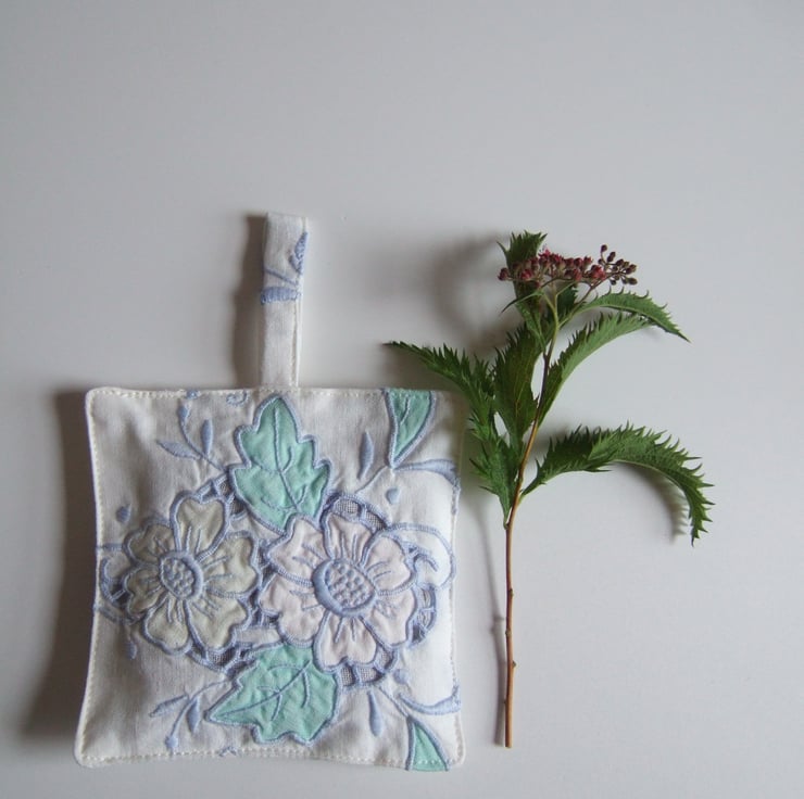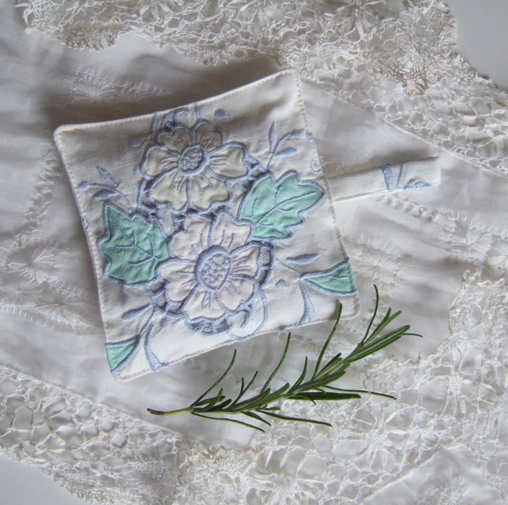 This pretty machine embroidered floral pattern, is perfect for something sweet smelling as it allows the scent to waft freely.