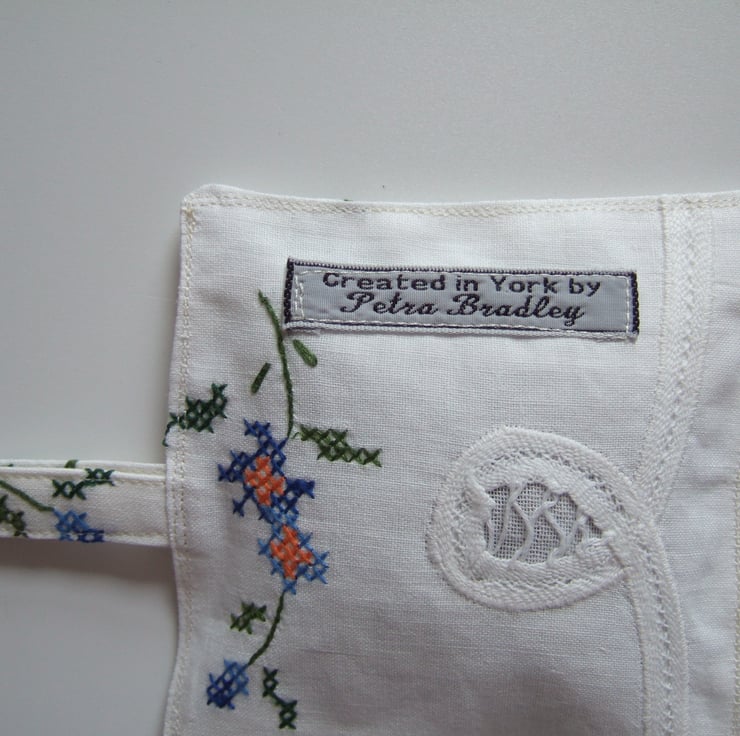 Hi there and welcome to my shop. Here you will find old embroideries, vintage fabrics and sparkling remnants made into something pretty and practical once again. I re-stock slowly but surely, so do keep coming back for a browse.