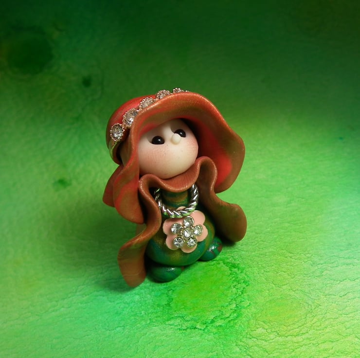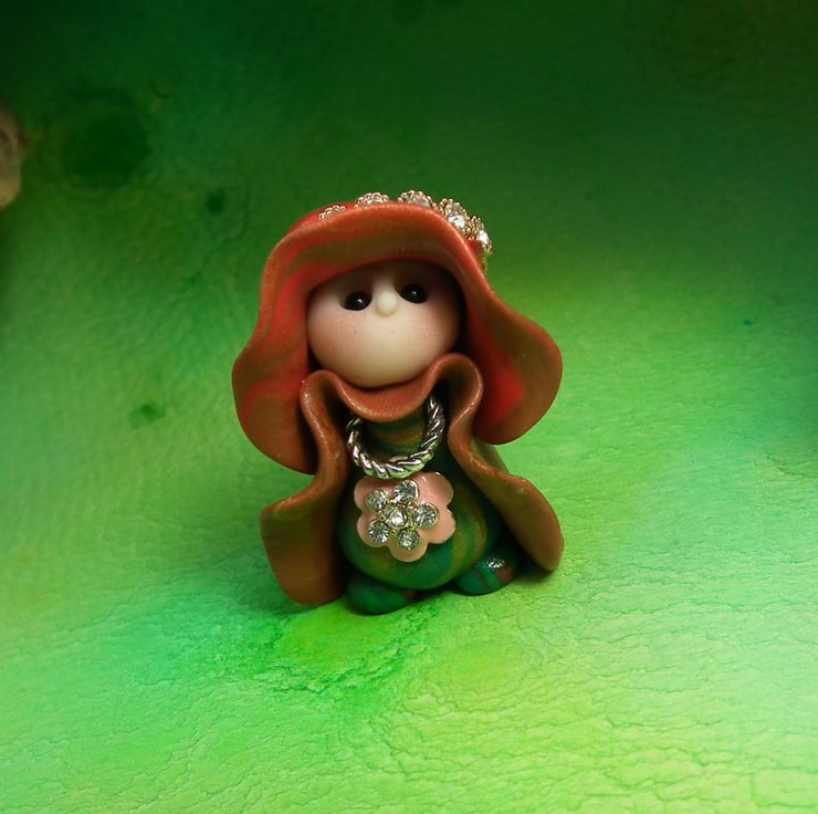 This is a 'one of a kind' creation having been entirely handmade without the use of moulds here at my studio on the Sussex Coast. Modelled with Prosculpt polymers, painted with heat set paints before sealing with lacquer, Princess Bella has sparkling black onyx eyes. Princess Bella the Royal Gnome is just one and a half inches tall.