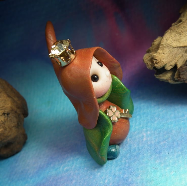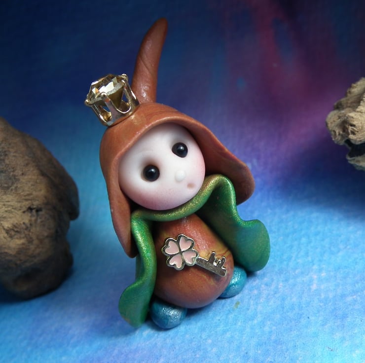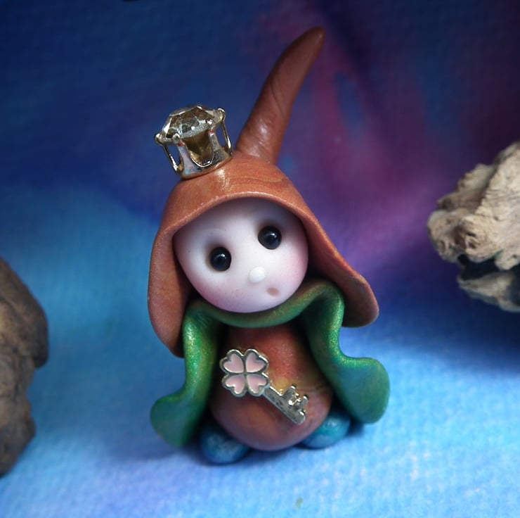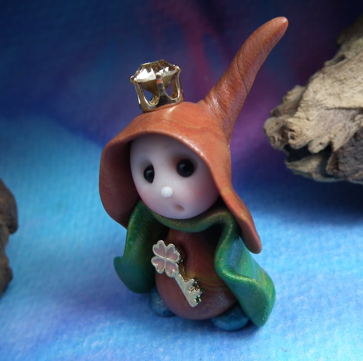 This is a 'one of a kind' creation having been entirely handmade without the use of moulds here at my studio on the Sussex Coast. Modelled with Prosculpt polymers, painted with heat set paints before sealing with lacquer, Princess Freya has sparkling black onyx eyes. Princess Freya the Royal Gnome is just one and a half inches tall.