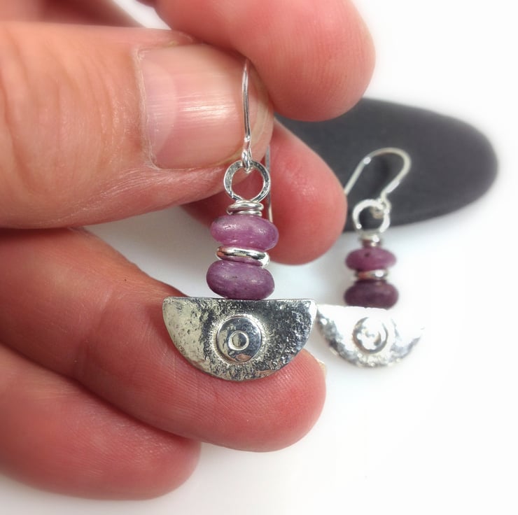 Small lightweight ,comfortable drop earrings with matte pink ruby pebble beads.