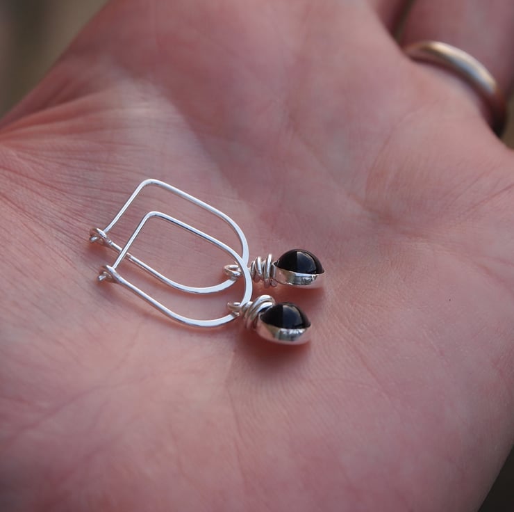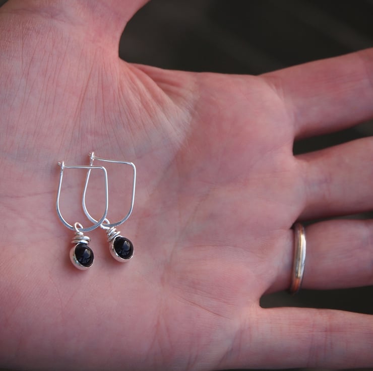 They hang from my handmade Argentium silver (hypoallergenic) stirrup ear wires that have a neat little pin and eye closure to hold them securely in place, making them ideal for everyday wear. I design and make my own ear wires and find this particular design very comfortable to wear.