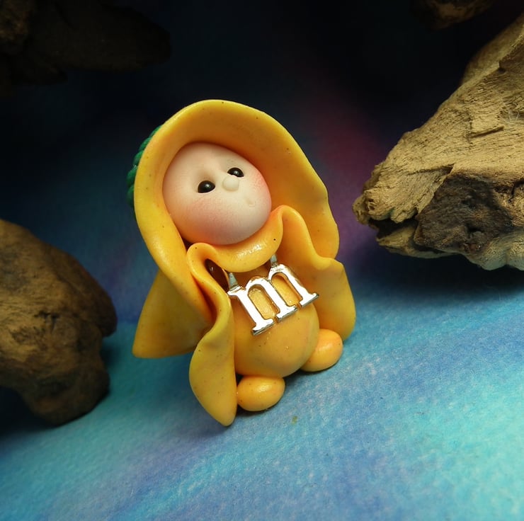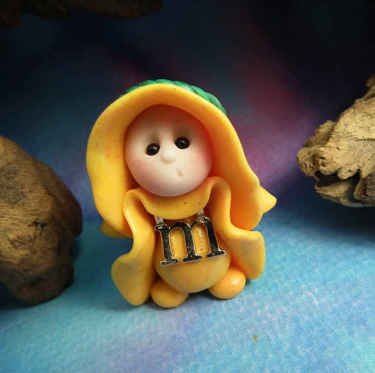 This is a 'one of a kind' creation having been entirely handmade without the use of moulds here at my studio on the Sussex Coast. Modelled with Prosculpt polymers, painted with heat set paints before sealing with lacquer, the 'M' Gnome has sparkling black onyx eyes. Just one and a half inches tall.